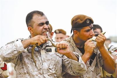 黎巴嫩士兵展示生吃蛇肉