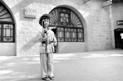 一位小朋友在延安枣园毛泽东旧居前拍照留影。随着抗日战争胜利70周年纪念日的到来,延安的旅游又火了起来。