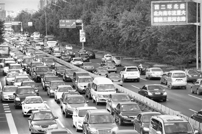 9月11日17时许,北京北二环鼓楼桥附近路段拥堵严重。受4、9尾号限行和周五出城人数增多等因素影响,北京迎来9月第三个最堵日。晚高峰时段,一场大雨更是为北京的交通“雪上加霜”。本报记者 王伟伟 摄