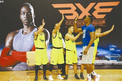 日前,匹克三对三全国总决赛在北京五中分校正式落下帷幕。来自温州的曼多最终击败北京行者赢得全国总冠军。刚刚签约匹克的NBA明星德怀特·霍华德到场助兴。图为霍华德和总冠军球队队员击掌。 刘君 摄