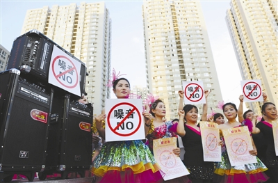 西安市一群跳广场舞的大妈们在广场上集体宣誓,将音量调低60分贝以下。 CFP供图