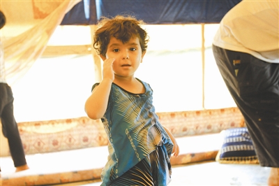 这是9月12日在黎巴嫩北部城市的黎波里的一处叙利亚难民营拍摄的一名叙利亚儿童。