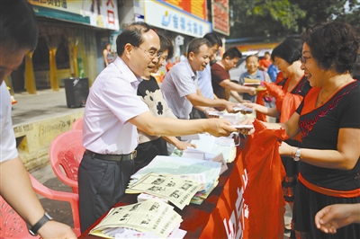 9月1日,阳泉市人大常委会副主任、市总工会主席王振国等领导在该市《条例》宣传现场发放宣传资料