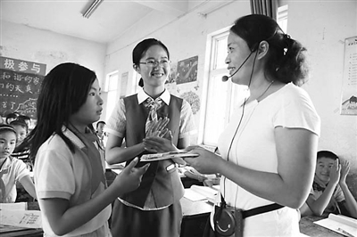 教师节当日,国网枣庄供电公司台儿庄客户服务分中心的党员服务队和马兰镇抗埠小学留守儿童以特别的方式为老师送上祝福。(孙覆海 贾广立)
