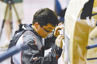 世界技能大赛的比赛对技术和体力都是很大的考验。20个国家20名选手要进行4天比赛,总时长20个小时,包括翼子板三工序湿碰湿喷涂(2小时30分钟)、调色(2小时30分钟)、点修补(2小时30分钟)、图案设计(5小时)、塑料件修复和车身侧围贴护(2小时30分钟)、车门内外双色喷涂(5小时)等6个项目。拿到金牌的杨金龙至今还感觉,“挺累的,比女人化妆还细致。”