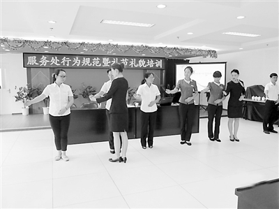 9月9日,北京首华物业管理有限公司服务处举办一场实战性的行为规范和礼节培训,来自北京饭店的培训老师讲授了五星级酒店的行为规范和礼貌礼节,包括基本行为规范、礼貌礼节和专业素质三个方面内容。大家受益匪浅,表示要把所学运用到各自的工作岗位上,更好地为小区住户和业主服务。王思思 摄