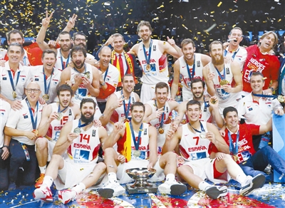 9月20日,在2015年欧洲男篮锦标赛决赛中,西班牙队以80比63战胜立陶宛队,夺得冠军。新华社/路透