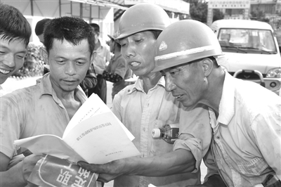 厦门市总工会到农民工集中的建筑工地宣传工会,推进农民工集中入会 (刘剑颖 摄)