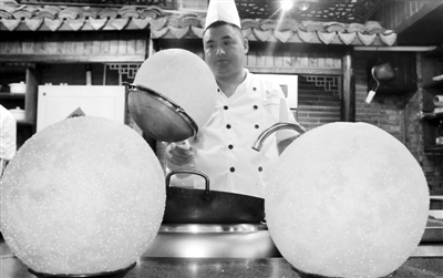 据了解,这种“空心麻团”直径约30厘米,手工制作后放到锅里油煎而成,色泽金黄,有团圆甜蜜的寓意。
