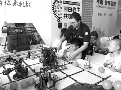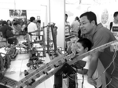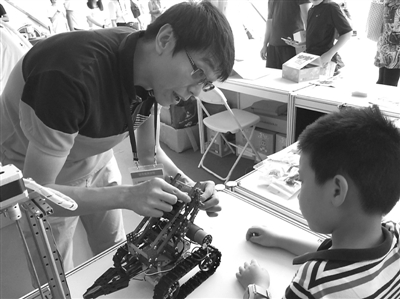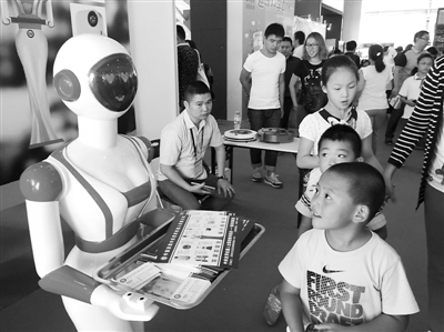 9月20日,2015年全国科普日北京主场活动——北京科学嘉年华向公众开放。在奥匹克公园中心区的活动会场,主办方设置了“科技托起中国梦、感触互联网+、乐享E生活、成就万众创新”四个板块。在这四个板块中,深深吸引着观众、尤其是孩子们眼球的,显然是那些五花八门的机器人。