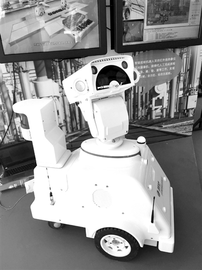 图⑤:让父子俩目不转睛的,是正在忙于工作的巡线机器人。