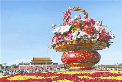 9月25日,“祝福祖国”大型花坛在天安门广场完工。