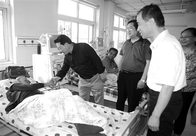 今年以来,在宏观经济发展减速、全国重卡市场下滑较大的严峻形势下,中国重汽集团工会仍继续加大困难职工帮扶资金投入、提高救助标准、扩大帮扶范围,努力为职工做好事、办实事、解难事,为党政分忧,为和谐添彩,得到了企业党政领导的充分肯定和广大职工的广泛认同。在中秋节、国庆节来临之际,中国重汽工会筹集资金93.84万元,向777名困难职工发放了慰问金及慰问品,使困难职工切实感受到企业的关心和温暖。图为中国重汽集团公司工会主席陈珩看望慰问住院困难职工。