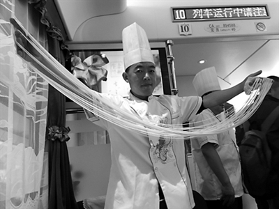 9月30日,兰州至上海Z218次"兰州旅游号”列车首发,兰州拉面也在此趟列车上首次开卖,旅客在行进的列车上即可品尝到具有西域特色的美食。本报记者 康劲 摄影报道