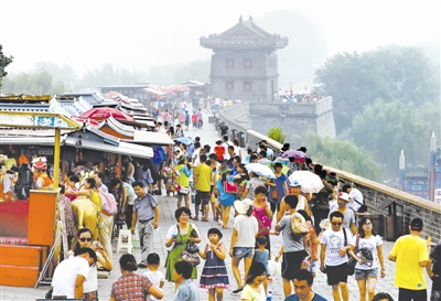 这是游客在山海关景区游览(2013年8月3日摄)。