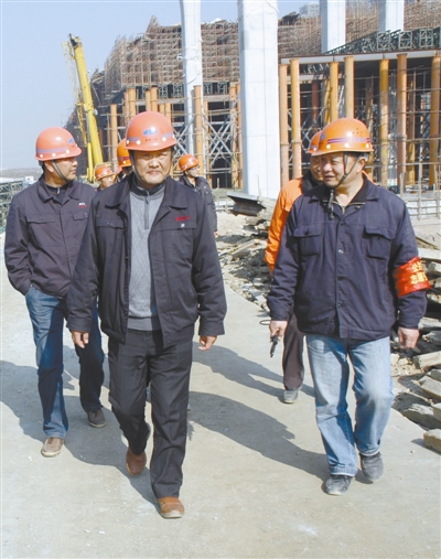 李少辉在施工现场遍插中国一冶的旗帜,鼓励大家为荣誉而战。