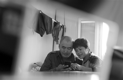 近日,长春一工地上,打工夫妻在用手机上网。他们居住的这种普通的彩钢房宿舍,每平方米造价200余元,稍大些的夫妻房价格要多出近50%。