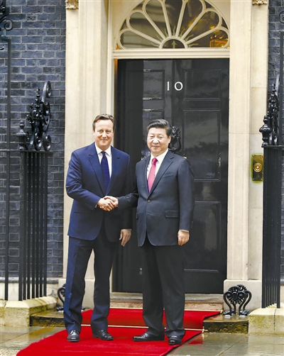 卡梅伦表示,习近平主席这次访英成果丰硕,双方就很多大项目、经贸协议达成一致,将有力推动双边关系发展。英国愿成为中国在西方最好的合作伙伴,将同中方在金融、能源、创意产业、签证便利化等领域扩大合作。英方愿积极参与亚洲基础设施投资银行建设,将积极研究同中方加强在“一带一路”框架下的合作。英国正处于经济调整过程中,欢迎中国企业到英国投资兴业。英国支持欧盟早日同中国达成自由贸易区协定,将为推动欧中关系发展作出积极贡献。