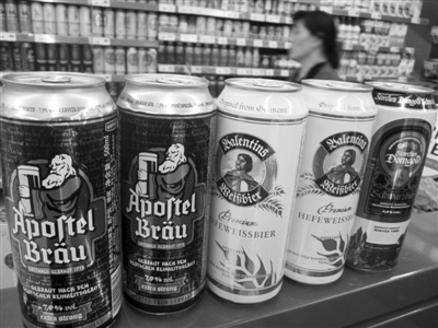 相关数据显示,今年1~8月,中国进口啤酒36万千升,同比增长65.7%。这在行业整体低迷的情况下显得尤其亮眼。图为江苏南通一超市进口商品专柜销售的洋啤酒。