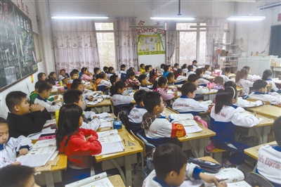 2009年,这所9年制学校刚刚创办时,赵燕就调到这所学校来了。那时一个班级才30人,等到2011年时,一个班级已有60多人。前两年,班级人数更是一度逼近90人,最大班容量达88人,“我是每年看着桌椅,一张张往教室里添,一直顶到后面的黑板。”