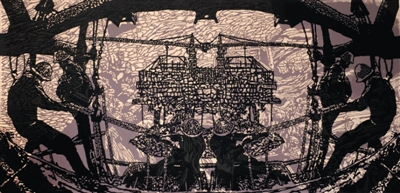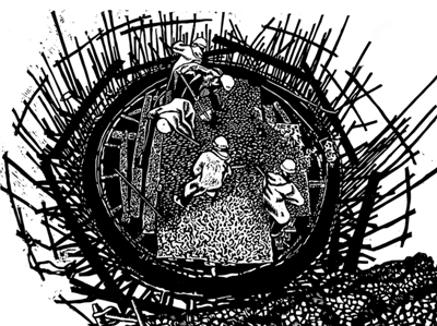 李仕兵是位业余的“专业画家”。他自幼就被家乡大邑刘文彩“收租院”里那一个个活生生的泥塑像吸引,并在他幼小的心灵中萌发了艺术的种子。上世纪80年代,他应征入伍,火热的部队生活更加激发了他的绘画热情。他的第一组作品《铁道兵战斗在大兴安岭》被《大兴安岭报》刊用,并参加了大兴安岭地区举办的画展,荣获一等奖。兵转工后,他的创作激情更是一发不可收拾。除了经常深入施工一线体验生活外,还研读了《素描技巧》等专业书籍,在他的工地宿舍挂满了人物肖像、版画、色彩画。经过刻苦的艺术磨砺,他已掌握了基础绘画知识。尤其是他的版画创作,虽多是执黑白刀锋,却能刻写出五彩生活。他是在用版画做笔记,将现实生活的点点滴滴,以版画形式升华为可欣赏的艺术。