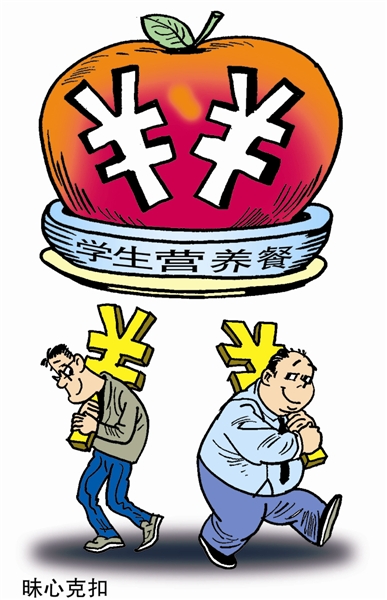 国家营养餐工程自2011年秋季推行,截至今年6月的数据显示,中央和地方累计安排资金1443亿元,全国有三分之一的县推行营养改善计划,3210万农村学生受惠。营养餐工程实施必须确保“两个安全”:一是食品安全。如若营养餐不营养,一切皆是虚妄之谈;二是资金安全,管住从学生嘴里“刨食”的手,确保把每一分钱都“吃”到孩子嘴里。这“两个安全”,是国家营养餐工程的生命线。但从多起营养餐事件看,不仅有校长贪腐问题,更有营养餐不营养、不卫生,甚至有多起学生中毒事件发生等。不仅给迫切希望吃饱、吃好的农村孩子带来伤害,也给主管部门、学校带来困扰,更令政策效用、政策善意大打折扣。云南彝良的这起校长贪腐事件,当地政府将其归结为“和校长的个人品德相关”。不过,我们能把营养餐问题频出,简单归结为少数人道德沦丧吗?要让营养餐的供给保证质量与安全,仅靠个人的道德自觉无法堵住营养餐打折扣的漏洞,重要的是要完善监管体系。