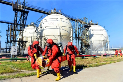 当日,沈阳市消防安全委员会组织消防、公安、环保等部门在沈阳石蜡化工有限公司举行危化企业灭火救援实战演习。演习以化工厂气体泄漏为假设险情,按照“科学、安全、有序、快速”的处置要求,采取侦检、警戒、搜救、稀释、疏散、断火等针对性措施。