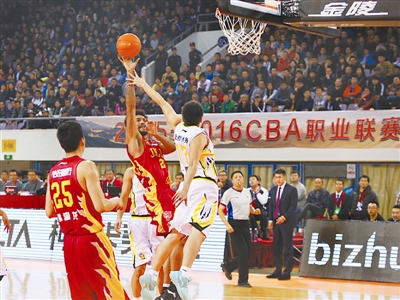 吉林外援马库斯·威廉姆斯在北控球员的封盖下投篮。 本报记者 郎成 摄