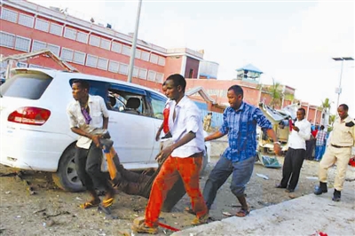 索马里宗教极端组织“青年党”1日对该国首都摩加迪沙一家酒店发动自杀式袭击,造成至少12人死亡。 新华社发(费萨尔摄)