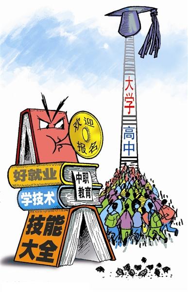 五中全会公报中在“普及高中阶段教育”的表述后面,紧跟着提出“逐步分类推进中等职业教育免除学杂费”,这让人们看到了中职教育发展的重大利好。正如教育部职业技术教育中心研究所所长杨进所言,目前的中职教育“既‘短’在观念上,也‘短’在政策上”。普及高中阶段教育,需要国家层面以及地方政府在教育发展规划中不厚此薄彼,又要切实提高质量,别把职业教育办成缺乏特色、质量不高的二流教育。因为职业教育本身是一个跨界的教育,对缩小贫富差距、推动城镇化进程意义重大。