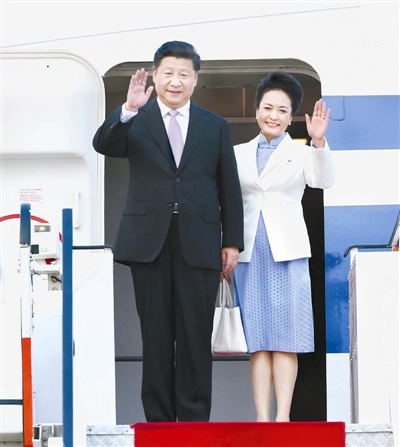 当地时间下午5时30分许,习近平乘坐的专机抵达新加坡樟宜国际机场。习近平和夫人彭丽媛在机场受到新加坡政府高级官员的热情迎接。