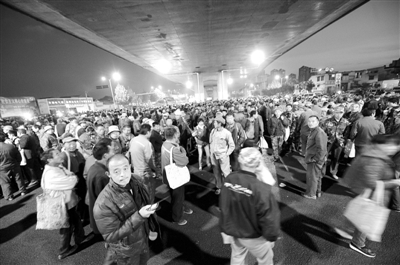 2015年10月31日,山东省济南市,西部新城在不断建设和发展,对建筑工、农民工的需求也日益增加。秋末冬初,农闲时节,大量农村剩余劳动力涌入西城附近寻找工作机会,从几年前的100多人发展到现在两三千人,成为济南市区最大的劳务市场。图为集体外出打工的农民,他们日行百里跨越黄河去谋生活。