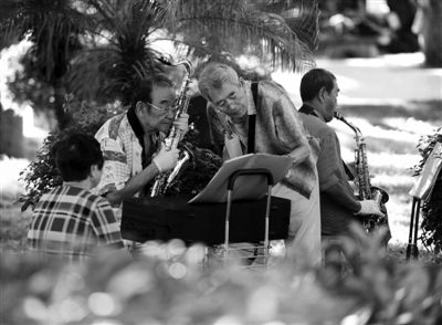 据海南省老龄办2015年1月统计数据,每年冬季高峰时全国各地到海南休闲、养生、养老的“候鸟老人”有45万人左右,而到三亚的则有30万之众。新华社发(沙晓峰 摄)