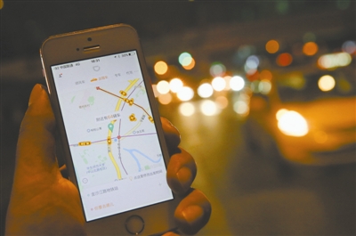 市民在上海街头使用滴滴出行APP预约出租车(10月8日摄)。