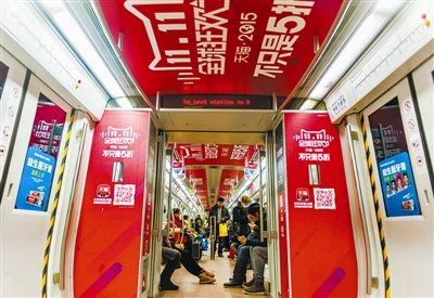 随着11月11日的临近,一场以“购物节”为名的网络促销活动拉开帷幕。各品牌电商为了赢得这场网络竞争,在“宣传战”上下足了功夫,某电商企业的促销广告已将北京地铁一号线车厢的广告位占满。