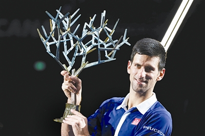 当日,在巴黎网球大师赛男单决赛中,塞尔维亚选手德约科维奇以2比0战胜英国选手穆雷,夺得冠军。 新华社/路透