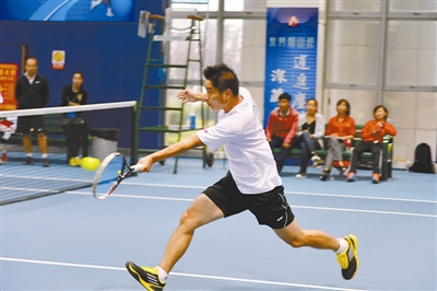 张健、黄广馨,来自江铜集团的一线普通职工。凭借稳健的球风,过硬的技术,在11月8日的团体比赛中,他俩这对混双组合,经过激烈的对决,战胜了省体育局代表队的选手。虽均年过不惑,但二人对网球的爱好却丝毫没有减退。作为网球在江铜集团推广发展过程的亲历者,张健说:“我从年轻时就开始喜欢网球运动,经过这么些年的推广,现在在江铜,网球运动氛围已经很浓。”