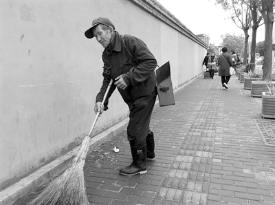 在养老保险这个问题上,二大队的蒲仕忠显然比孙师傅想得深。老家在四川广元剑阁县元山镇的他今年55岁,下颚一茬茬的白胡须,让他看起来比同龄人老上许多。和儿子相依为命的蒲仕忠在北京待了9年,原来在西直门干环卫工,2011年来到什刹海保洁队二队,和另外一位工友负责鼓楼到东不压桥的1000多米的主干道保洁。说起养老保险,蒲仕忠又激动又疑惑。他告诉记者,自己以前没交过养老保险,现在交了四年多了,可还有五年就退休,没有达到国家政策规定要求的15年缴纳标准,也从未听说有组织集中补缴的说法。蒲仕忠有点担心:“养老保险,够我养老吗?”