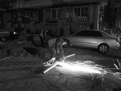 来自河北沧州的他,下个月就要过自己64岁的生日了。已经干了5个多小时活的他决定歇口气。和他一道的老乡们正在从路边的大卡车里扛10CM口径的钢管,停放一旁的切割机不时响起,火星四溅,把满脸的沟壑映得分外清晰。声音嘈杂,史忠亮几乎是靠比划跟《工人日报》记者交谈。就这样,史忠亮一边干活一边和记者交谈,直到早晨6点才勉强歇了会儿。