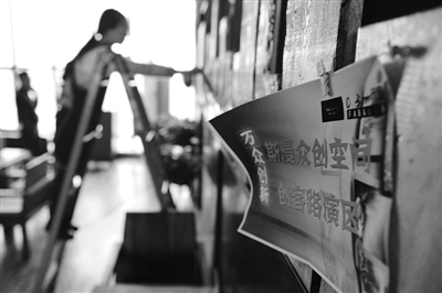 11月11日,一名创业者在兰州市安宁区斯漫众创空间内的路演交流墙上发布信息。