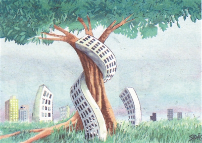 城市圈地盖楼已成痼疾,钢筋水泥建筑像条巨蟒绞杀着绿色环境。何需许久?这种恶性蚕食即让人们生存空间更为狭窄。【巴西】马奎斯