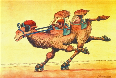 聪明的旅行家为提高“沙漠之舟”的速度,给坐骑装上滚珠滑轮,顿时骆驼奔驰如飞,他们保障安全还配备了防护设施。妙!【乌克兰】卡赞尼夫斯基