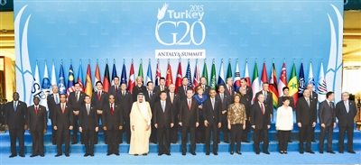 11月15日,二十国集团领导人第十次峰会在土耳其安塔利亚举行。国家主席习近平出席并发表题为《创新增长路径 共享发展成果》的重要讲话。这是习近平主席同与会领导人合影。 新华社记者 李学仁 摄