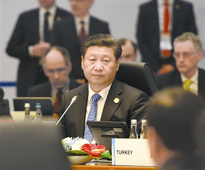 11月15日,二十国集团领导人第十次峰会在土耳其安塔利亚举行。国家主席习近平出席并发表题为《创新增长路径 共享发展成果》的重要讲话。图为习近平出席第一阶段会议。新华社记者 李学仁 摄