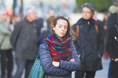 当日中午12点,法国民众集体默哀一分钟,为巴黎系列恐怖袭击事件中的遇难者送上哀思。