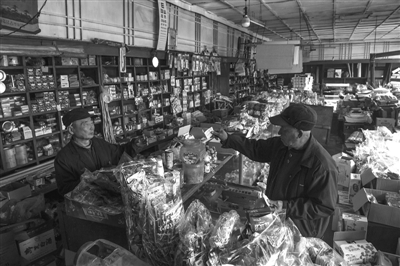 在供销社内,营业员吕忠彬熟练地用木质米尺丈量着塑料布,为老顾客叠好,在装钱的木匣子里找好了零钱,边聊着天边打理着手里的活儿。这样的供销社生活一晃持续了近50年,现在乡亲们都亲切地叫他老吕头。 视觉中国