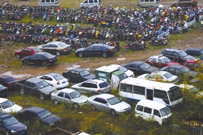 11月16日,湖北宜昌,一停车场内停放着数千辆密密麻麻的轿车、面包车、摩托车、大货车等机动车,不少机动车车身锈损,长时间无人移动,周边长满野草,形成了一个机动车“坟场”,显得十分荒凉。据了解,这些车辆都是等待处理的事故报废车辆。