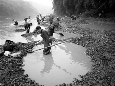11月17日,四川泸州,在洗猪滩挖石的村民。