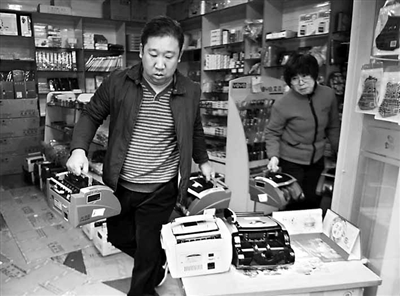 11月19日,浙江省杭州市,客户将已升级的验钞机搬运出杭州一家专营验钞机的商店。