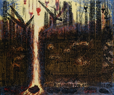 要读懂工业版画的艺术之美,就要了解中国近代工业首发之地武汉,解读现代工业发展的武汉,就能洞悉青山的工业与艺术元素完美结合的必然。伴随着新中国第一批重点工业建设项目及大型企业如武钢、一冶落户武汉青山,青山区诞生了全国最早一批工业版画创作集体。武汉工业版画具有创作题材直接来自工业建设、创作者全部来自建设一线的工人劳动者这两项重要特性。正是生产建设本身的企业文化成为工业版画的创作源泉,也为工业版画的集群化发展提供了先天土壤。上世纪50年代,武钢在全国范围内率先孕育了工人版画的创作群体,在半个多世纪的艺术探索中,武钢、一冶工人版画群体逐渐由业余走向专业,亦成为了武汉工业版画的中坚力量,构建了武汉工业版画的整体创作面貌。他们始终活跃在中国工业版画的舞台上,从工业版画历史图景的勾画到创作语言手法的变异与革新,都产生了广泛的影响。他们用画笔和刻刀,记录了工业的发展历程,表现火红年代的沸腾生活,描绘工业热烈的生产场面,抒发建设者的豪迈情怀。半个多世纪以来,武汉青山地区的工业版画活动产生了一大批在全国卓有影响的工业版画创作人才,2013年“武汉青山工业版画研究院”的成立,重新整合了创作力量。他们一直坚守着工业版画的创作阵地,作为不脱离生产生活的原创艺术家,始终活跃在中国工业版画的创作前沿。如今武汉青山工业版画创作发展模式已逐渐辐射到煤矿、铁路、石化等工业聚集区,并得到专家认可、深受群众喜爱。